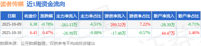 资金流向数据方面,本周读者传媒主力资金合计净流出288.12万元,游资资金合计净流入272.03万元,散户资金合计净流入16.08万元。本周资金流向一览见下表: