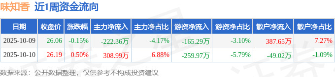 沪深股通持股方面,截止2025年10月10日收盘,味知香沪股通持股数为34.81万股,占流通股比为25.0%。