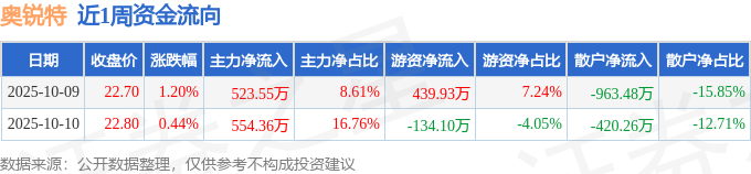 沪深股通持股方面,截止2025年10月10日收盘,奥锐特沪股通持股数为288.45万股,占流通股比为73.0%。