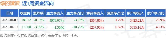 资金流向数据方面,本周绿的谐波主力资金合计净流出1.86亿元,游资资金合计净流入9812.8万元,散户资金合计净流入8778.38万元。本周资金流向一览见下表: