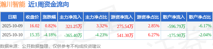 资金流向数据方面,本周瀚川智能主力资金合计净流出44.15万元,游资资金合计净流入816.84万元,散户资金合计净流出772.69万元。本周资金流向一览见下表: