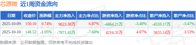 资金流向数据方面,本周芯源微主力资金合计净流入1151.92万元,游资资金合计净流出247.9万元,散户资金合计净流出904.02万元。本周资金流向一览见下表: