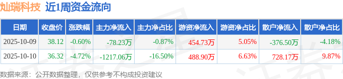 资金流向数据方面,本周灿瑞科技主力资金合计净流出1295.29万元,游资资金合计净流入943.63万元,散户资金合计净流入351.66万元。本周资金流向一览见下表: