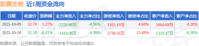 沪深股通持股方面,截止2025年10月10日收盘,凯赛生物沪股通持股数为474.69万股,占流通股比为81.0%。