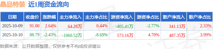 资金流向数据方面,本周晶品特装主力资金合计净流出996.24万元,游资资金合计净流入167.75万元,散户资金合计净流入828.49万元。本周资金流向一览见下表: