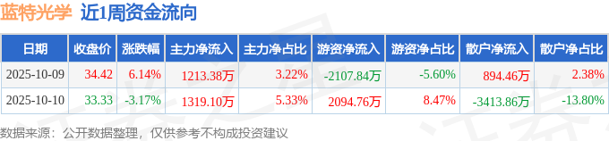 沪深股通持股方面,截止2025年10月10日收盘,蓝特光学沪股通持股数为330.82万股,占流通股比为82.0%。