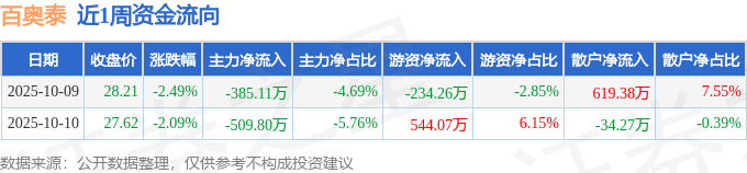 资金流向数据方面,本周百奥泰主力资金合计净流出894.92万元,游资资金合计净流入309.81万元,散户资金合计净流入585.11万元。本周资金流向一览见下表: