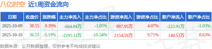 资金流向数据方面,本周八亿时空主力资金合计净流出2959.15万元,游资资金合计净流入3042.54万元,散户资金合计净流出83.38万元。本周资金流向一览见下表: