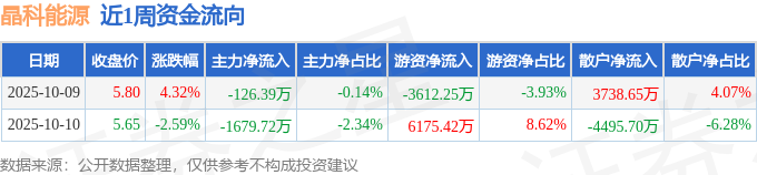 沪深股通持股方面,截止2025年10月10日收盘,晶科能源沪股通持股数为1.48亿股,占流通股比为476.0%。