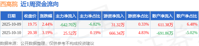 资金流向数据方面,本周西高院主力资金合计净流出617.18万元,游资资金合计净流入697.66万元,散户资金合计净流出80.48万元。本周资金流向一览见下表: