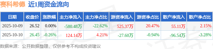 资金流向数据方面,本周赛科希德主力资金合计净流出456.34万元,游资资金合计净流入497.77万元,散户资金合计净流出41.43万元。本周资金流向一览见下表:
