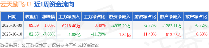资金流向数据方面,本周云天励飞主力资金合计净流出1.26亿元,游资资金合计净流入1.32亿元,散户资金合计净流出669.86万元。本周资金流向一览见下表: