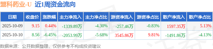 资金流向数据方面,本周盟科药业主力资金合计净流出3393.88万元,游资资金合计净流入3288.4万元,散户资金合计净流入105.49万元。本周资金流向一览见下表: