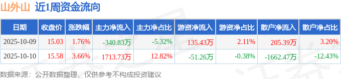 资金流向数据方面,本周山外山主力资金合计净流入1372.91万元,游资资金合计净流入84.17万元,散户资金合计净流出1457.08万元。本周资金流向一览见下表: