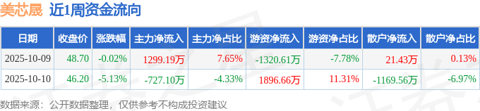 资金流向数据方面,本周美芯晟主力资金合计净流入572.09万元,游资资金合计净流入576.04万元,散户资金合计净流出1148.13万元。本周资金流向一览见下表: