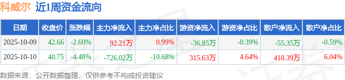资金流向数据方面,本周科威尔主力资金合计净流出633.81万元,游资资金合计净流入278.78万元,散户资金合计净流入355.03万元。本周资金流向一览见下表: