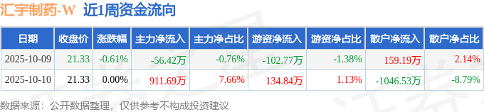资金流向数据方面,本周汇宇制药主力资金合计净流入855.28万元,游资资金合计净流入32.06万元,散户资金合计净流出887.34万元。本周资金流向一览见下表: