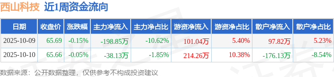 资金流向数据方面,本周西山科技主力资金合计净流出236.98万元,游资资金合计净流入315.29万元,散户资金合计净流出78.32万元。本周资金流向一览见下表: