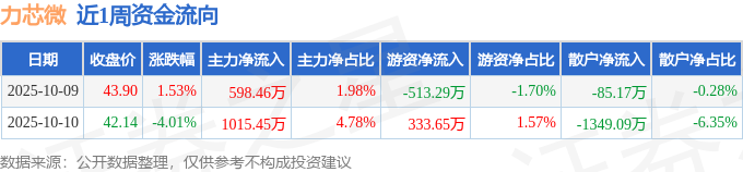 资金流向数据方面,本周力芯微主力资金合计净流入1613.91万元,游资资金合计净流出179.65万元,散户资金合计净流出1434.26万元。本周资金流向一览见下表: