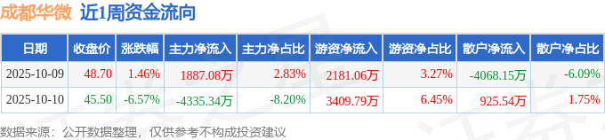 资金流向数据方面,本周成都华微主力资金合计净流出2448.25万元,游资资金合计净流入5590.86万元,散户资金合计净流出3142.6万元。本周资金流向一览见下表: