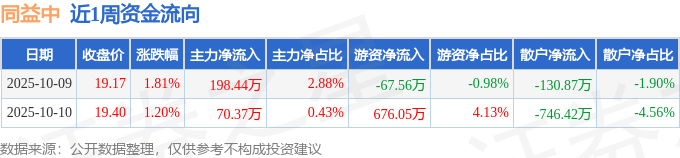 资金流向数据方面,本周同益中主力资金合计净流入268.81万元,游资资金合计净流入608.48万元,散户资金合计净流出877.29万元。本周资金流向一览见下表: