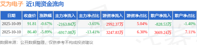 资金流向数据方面,本周艾为电子主力资金合计净流出9080.92万元,游资资金合计净流入6240.21万元,散户资金合计净流入2840.71万元。本周资金流向一览见下表: