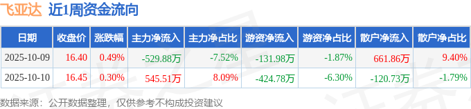 资金流向数据方面,本周飞亚达主力资金合计净流入15.63万元,游资资金合计净流出556.76万元,散户资金合计净流入541.13万元。本周资金流向一览见下表: