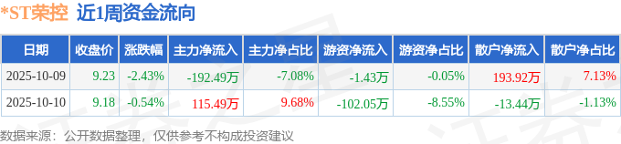 资金流向数据方面,本周*ST荣控主力资金合计净流出77.0万元,游资资金合计净流出103.48万元,散户资金合计净流入180.48万元。本周资金流向一览见下表: