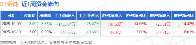 资金流向数据方面,本周ST金鸿主力资金合计净流出1773.86万元,游资资金合计净流入792.55万元,散户资金合计净流入981.31万元。本周资金流向一览见下表: