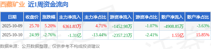 沪深股通持股方面,截止2025年10月10日收盘,西藏矿业深股通持股数为401.85万股,占流通股比为77.0%。