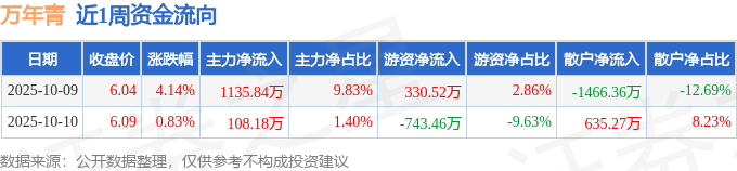资金流向数据方面,本周万年青主力资金合计净流入1244.03万元,游资资金合计净流出412.93万元,散户资金合计净流出831.09万元。本周资金流向一览见下表: