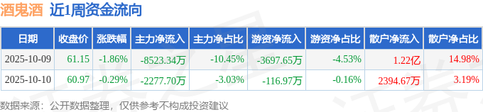 资金流向数据方面,本周酒鬼酒主力资金合计净流出1.08亿元,游资资金合计净流出3814.62万元,散户资金合计净流入1.46亿元。本周资金流向一览见下表: