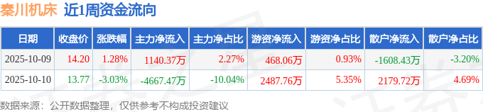 资金流向数据方面,本周秦川机床主力资金合计净流出3527.11万元,游资资金合计净流入2955.82万元,散户资金合计净流入571.29万元。本周资金流向一览见下表: