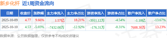 资金流向数据方面,本周新乡化纤主力资金合计净流入8251.26万元,游资资金合计净流出4087.43万元,散户资金合计净流出4163.83万元。本周资金流向一览见下表:
