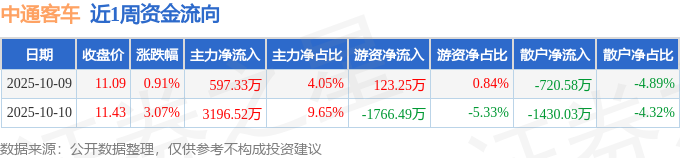 沪深股通持股方面,截止2025年10月10日收盘,中通客车深股通持股数为637.96万股,占流通股比为108.0%。