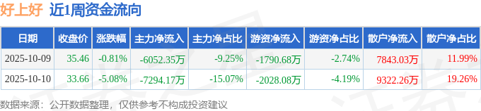 资金流向数据方面,本周好上好主力资金合计净流出1.33亿元,游资资金合计净流出3818.77万元,散户资金合计净流入1.72亿元。本周资金流向一览见下表: