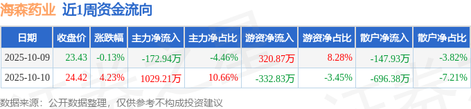 资金流向数据方面,本周海森药业主力资金合计净流入856.27万元,游资资金合计净流出11.96万元,散户资金合计净流出844.31万元。本周资金流向一览见下表: