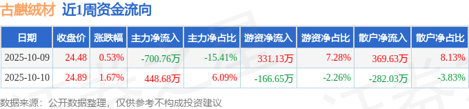 资金流向数据方面,本周古麒绒材主力资金合计净流出252.08万元,游资资金合计净流入164.48万元,散户资金合计净流入87.6万元。本周资金流向一览见下表: