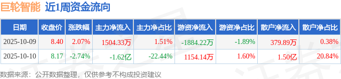 资金流向数据方面,本周巨轮智能主力资金合计净流出1.47亿元,游资资金合计净流出730.08万元,散户资金合计净流入1.54亿元。本周资金流向一览见下表: