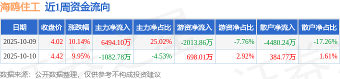 资金流向数据方面,本周海鸥住工主力资金合计净流入5411.31万元,游资资金合计净流出1315.85万元,散户资金合计净流出4095.47万元。本周资金流向一览见下表: