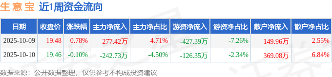 资金流向数据方面,本周生 意 宝主力资金合计净流入34.69万元,游资资金合计净流出553.74万元,散户资金合计净流入519.04万元。本周资金流向一览见下表: