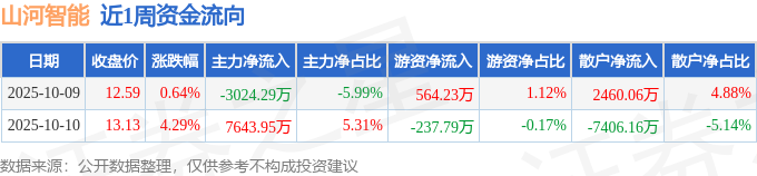 资金流向数据方面,本周山河智能主力资金合计净流入4619.66万元,游资资金合计净流入326.44万元,散户资金合计净流出4946.1万元。本周资金流向一览见下表: