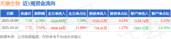 沪深股通持股方面,截止2025年10月10日收盘,天康生物深股通持股数为886.67万股,占流通股比为65.0%。