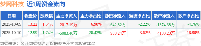 沪深股通持股方面,截止2025年10月10日收盘,梦网科技深股通持股数为1783.49万股,占流通股比为260.0%。