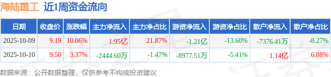 资金流向数据方面,本周海陆重工主力资金合计净流入1.71亿元,游资资金合计净流出2.11亿元,散户资金合计净流入4045.7万元。本周资金流向一览见下表:
