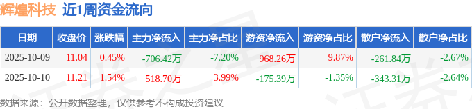 资金流向数据方面,本周辉煌科技主力资金合计净流出187.72万元,游资资金合计净流入792.87万元,散户资金合计净流出605.15万元。本周资金流向一览见下表: