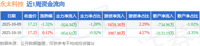 资金流向数据方面,本周永太科技主力资金合计净流出1778.95万元,游资资金合计净流入5647.1万元,散户资金合计净流出3868.15万元。本周资金流向一览见下表: