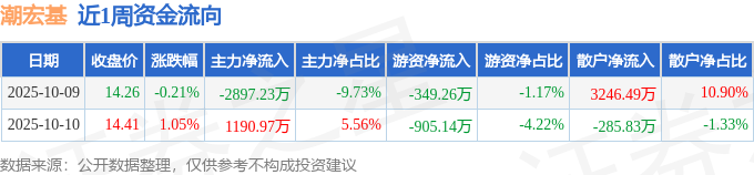 资金流向数据方面,本周潮宏基主力资金合计净流出1706.26万元,游资资金合计净流出1254.4万元,散户资金合计净流入2960.66万元。本周资金流向一览见下表: