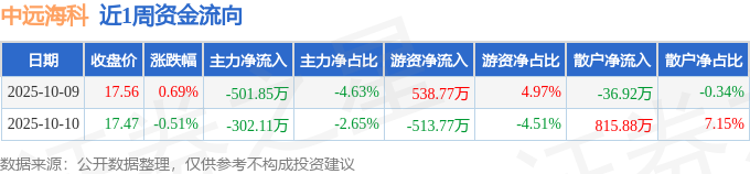 资金流向数据方面,本周中远海科主力资金合计净流出803.96万元,游资资金合计净流入25.0万元,散户资金合计净流入778.96万元。本周资金流向一览见下表:
