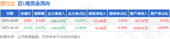 资金流向数据方面,本周爱仕达主力资金合计净流出2233.48万元,游资资金合计净流入607.5万元,散户资金合计净流入1625.99万元。本周资金流向一览见下表: